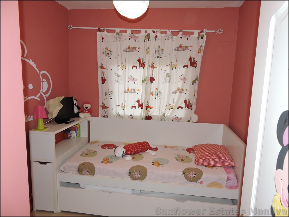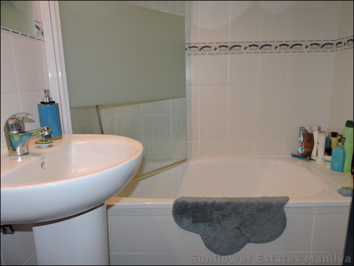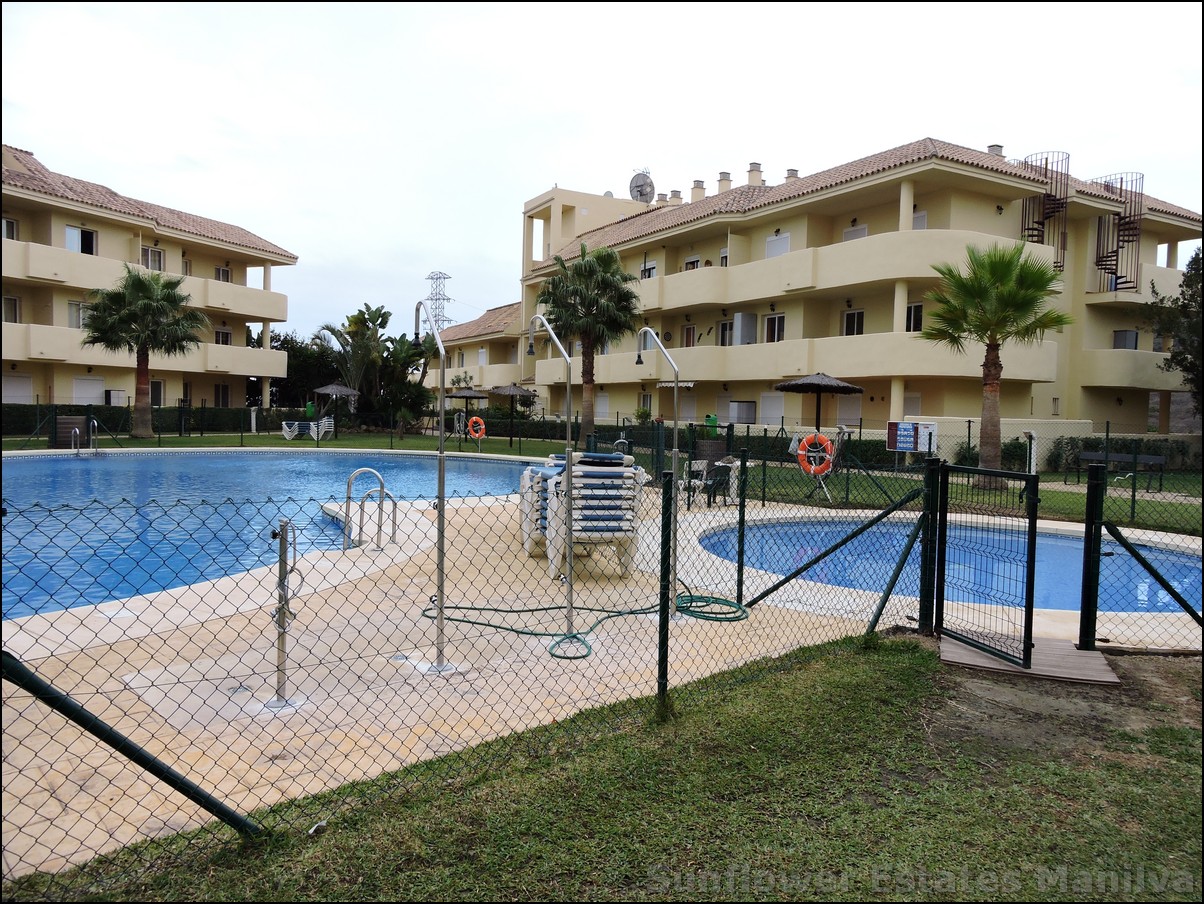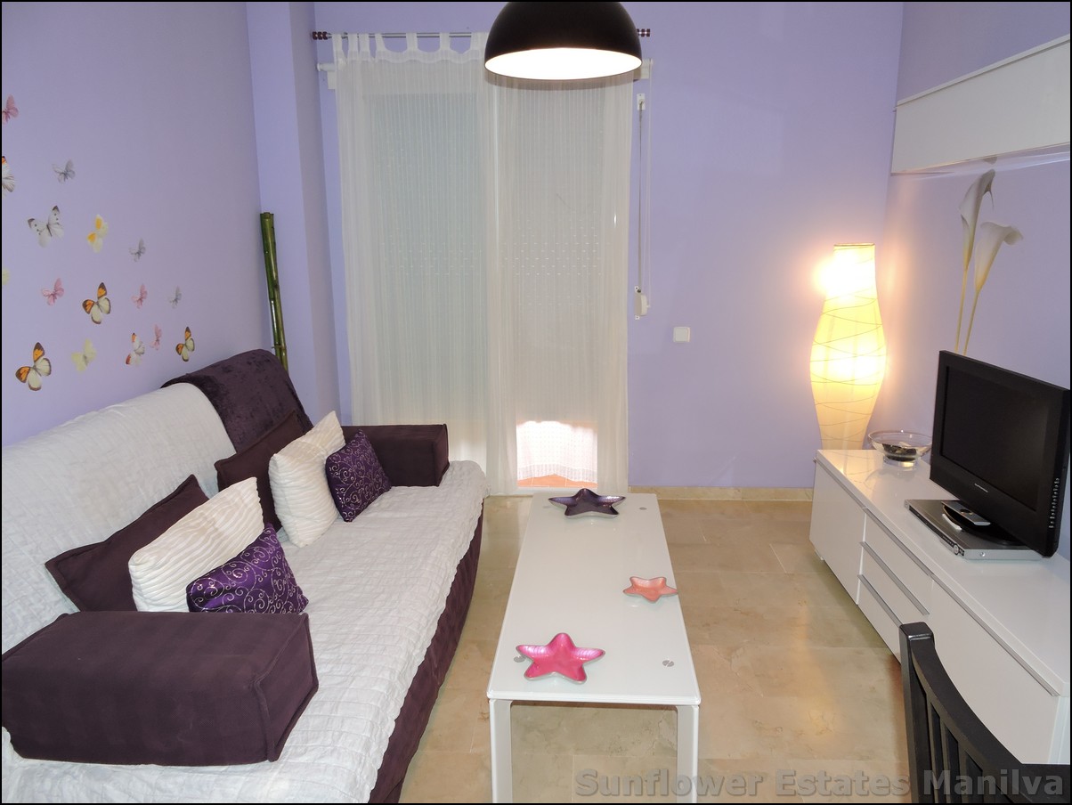 • Overview: GREAT DEAL! Apartment with views, parking, pool and storage! Walking distance to the beach, great rental investment! Fantastic two bedrooms, two bathrooms apartment, including parking space and storage room! Urbanization very new and really nicely done, communal fees 80 Euros a month. Large communal pool and separate children’s pool. Fully air conditioned and electric. This urbanization is walking distance from Aldea beach and has a good size terrace with sea views and morning sun. ESPAÑOL: Apartamento de dos habitaciones y dos baños. Uno amueblado para habitación de niña. La habitación principal con baño de bañera y el baño familiar con una ducha. El salón y comedor conjunto y de buen tamaño, muebles modernos y comodos todo incluido en el precio. Una terraza mirando al este y con vistas laterales al mar. Cerca de uno de las mejores playas de Manilva – Aldea beach. Comunidad con piscina y el precio incluye un parking de un buen tamaño y trastero! Comunidad al mes de 79Euros y IBI anual 401Euros..