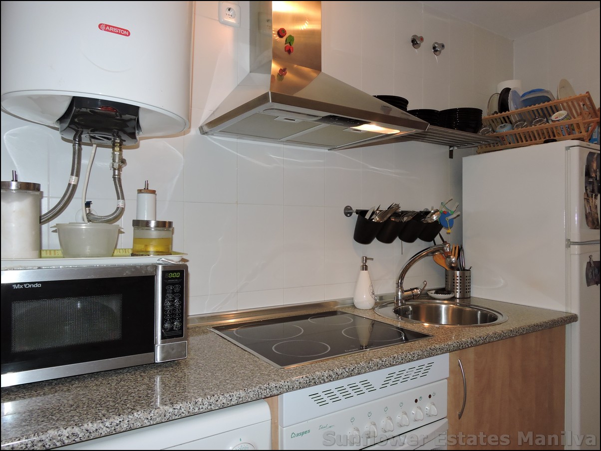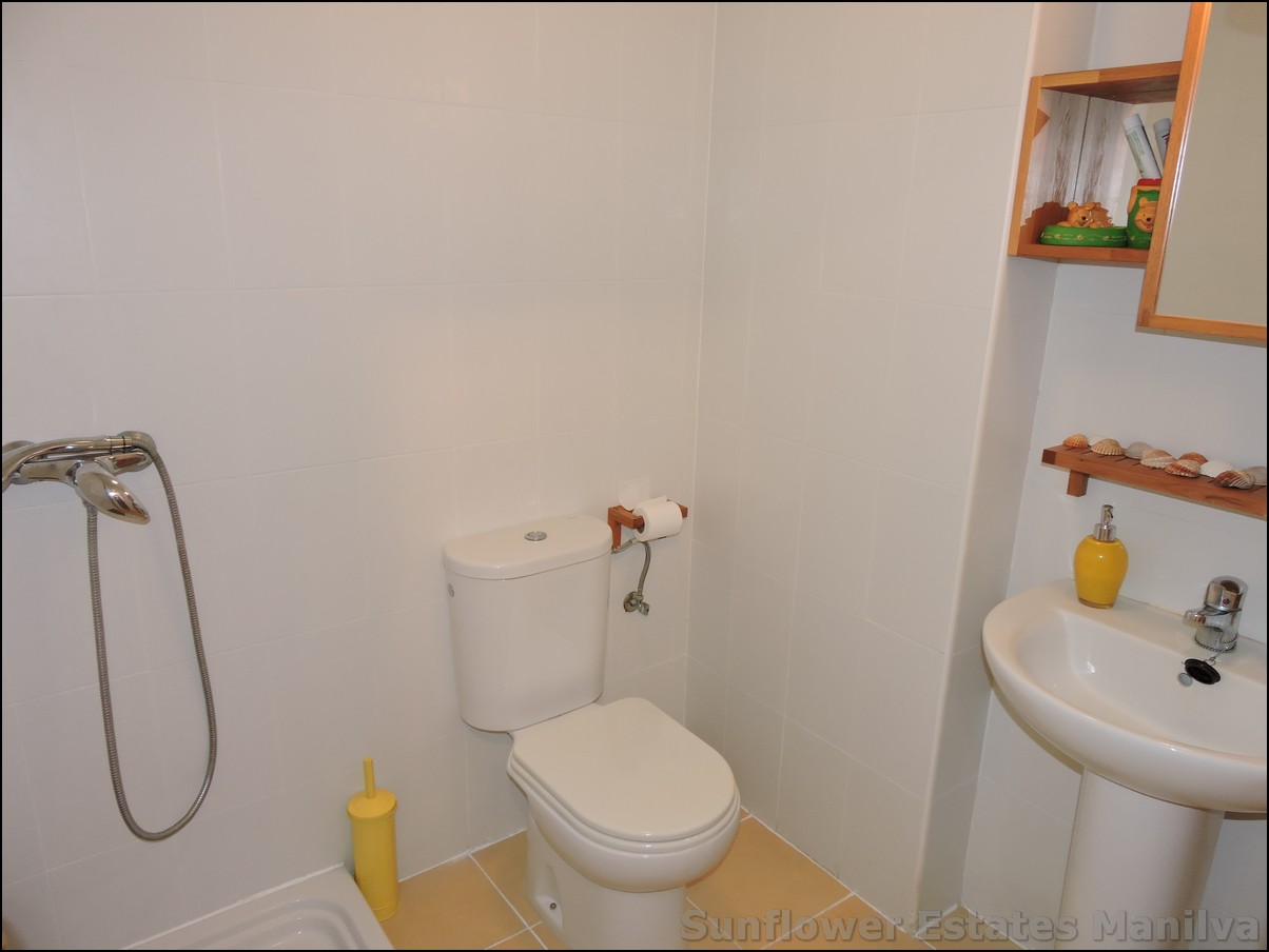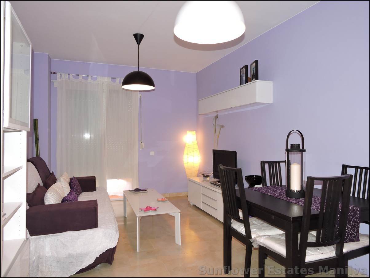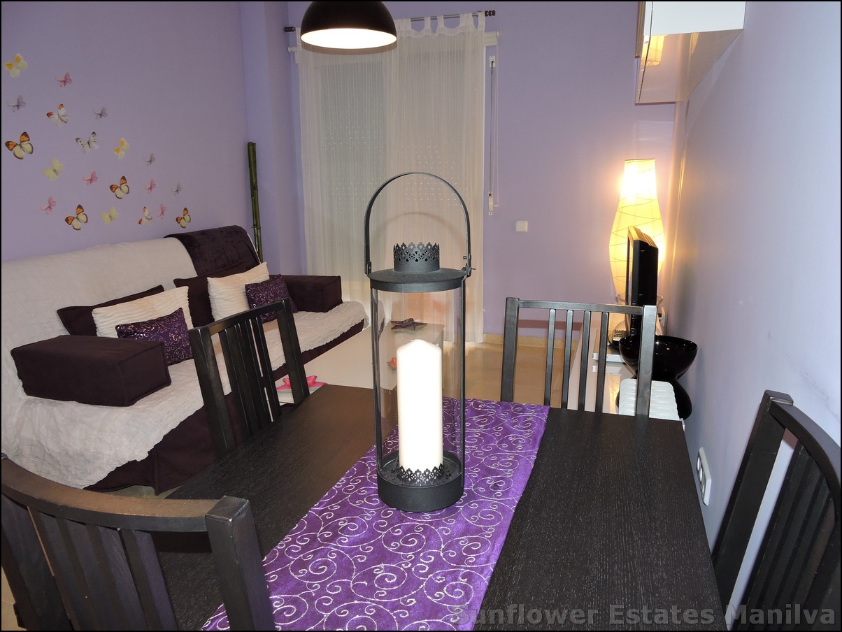 • Overview: GREAT DEAL! Apartment with views, parking, pool and storage! Walking distance to the beach, great rental investment! Fantastic two bedrooms, two bathrooms apartment, including parking space and storage room! Urbanization very new and really nicely done, communal fees 80 Euros a month. Large communal pool and separate children’s pool. Fully air conditioned and electric. This urbanization is walking distance from Aldea beach and has a good size terrace with sea views and morning sun. ESPAÑOL: Apartamento de dos habitaciones y dos baños. Uno amueblado para habitación de niña. La habitación principal con baño de bañera y el baño familiar con una ducha. El salón y comedor conjunto y de buen tamaño, muebles modernos y comodos todo incluido en el precio. Una terraza mirando al este y con vistas laterales al mar. Cerca de uno de las mejores playas de Manilva – Aldea beach. Comunidad con piscina y el precio incluye un parking de un buen tamaño y trastero! Comunidad al mes de 79Euros y IBI anual 401Euros..